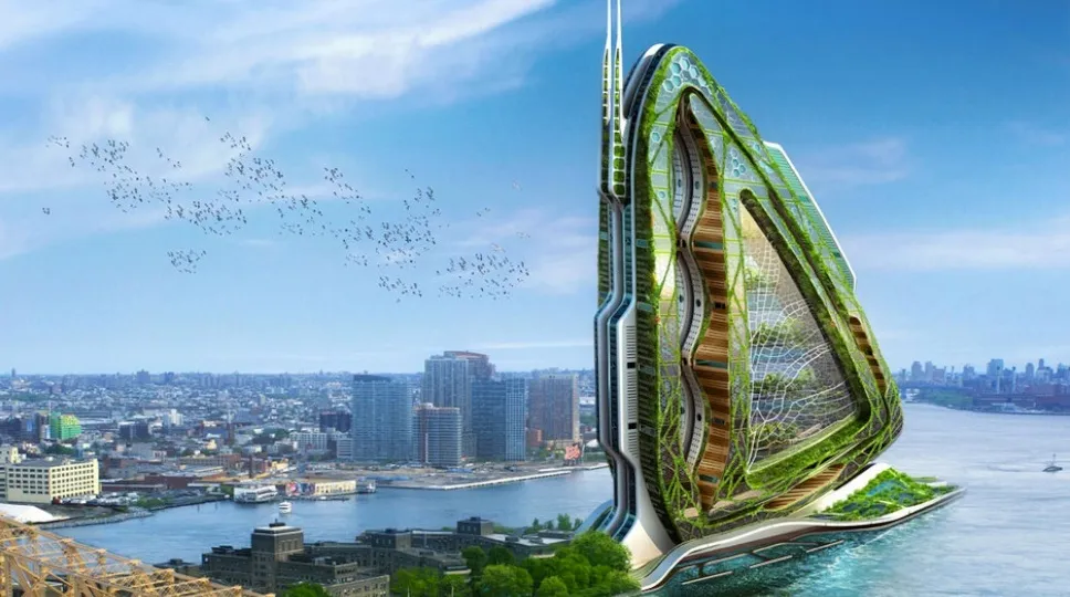 'As the world's human population grows, we're reducing the amount of agricultural areas and forests. That's why some architects are working on concepts for sustainable skyscrapers and vertical agricultural buildings. Here are some of the most interesting plans for the merging of the city and the farm.' - from i09